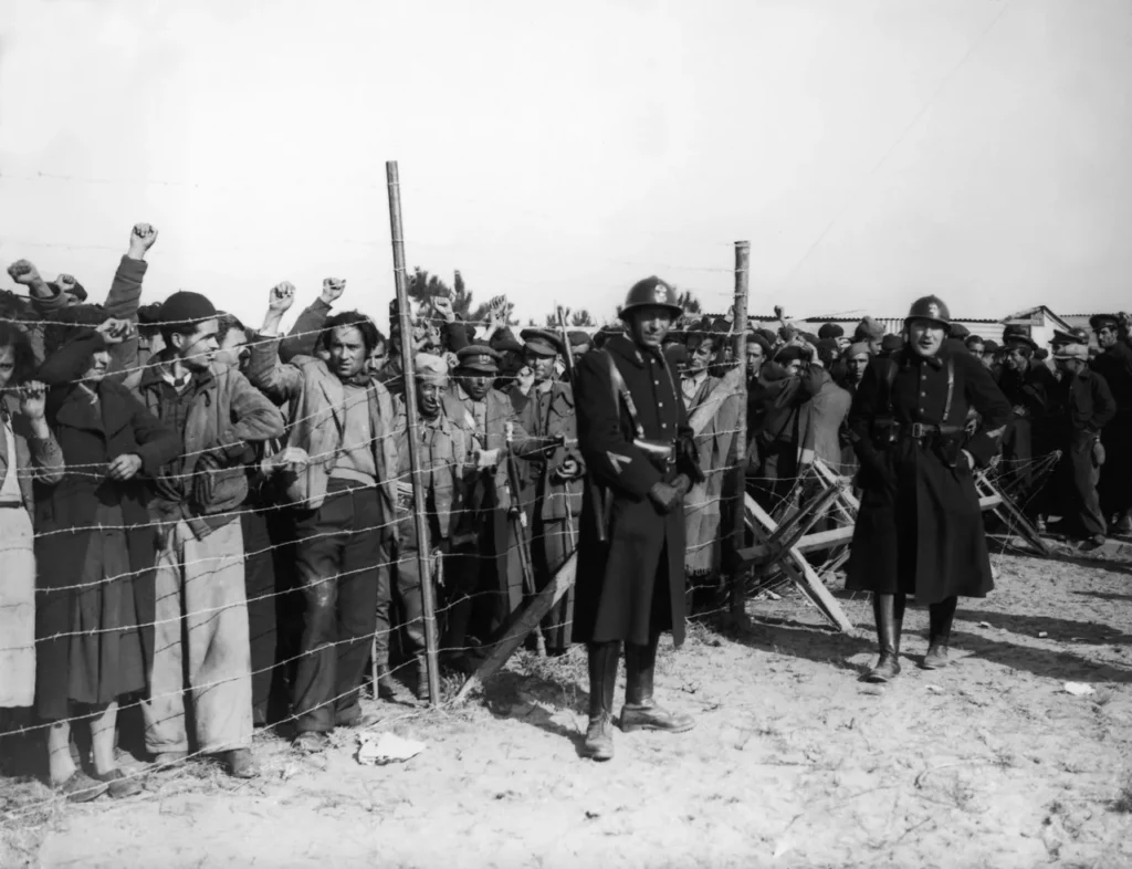Une partie de mon travail consiste à travailler sur ce qu’il s’est passé une fois que la guerre a été perdue, et que la plupart de ces femmes ont dû partir en exil. Il faut savoir que la guerre se termine en 1939, et qu’entre janvier et février de cette même année, il y a une fuite massive – mais massive – de personnes qui fuient la guerre parce qu’elles se rendent compte qu’on est en train de perdre, et que c’est soit le fascisme, soit l’exil. Pour cette période, les anarchistes utilisent souvent le nom d’exode, et c’est assez parlant. En deux semaines, il y a presque un demi-million de personnes qui ont traversé la frontière. Les images sont monumentales : on voit vraiment des queues de personnes, de personnes, de personnes. C’est quelque chose de très humiliant. Evidemment, les autorités françaises n’accueillent pas les réfugiés les bras ouverts, très très loin de là. Les hommes, notamment, sont désarmés, humiliés, etc. Et ils vont être accueillis en France, dans cette magnifique république de « liberté égalité tout ça », dans des camps de concentration. Des camps de concentration, qui pour certains n’existaient pas encore : au début, les réfugié·es ont été mis sur des plages avec du barbelé autour, et les camps ont été construits progressivement comme ça. On est en février. Le froid : vous pouvez imaginer. Les gens sont morts de froid, de faim, de maladie, et également parce qu’ils étaient maltraités et violentés par la police française.