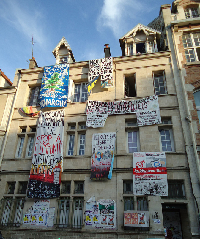 L’autre chose qui m’intéresse beaucoup à titre personnel dans l’anarchie, c’est le fait que c’est une pensée politique qui articule en permanence la pensée politique et la pratique, et que c’est deux choses qui vont systématiquement ensemble ; que la pratique va nourrir la théorie, que cette théorie va change et va donc impulser une nouvelle pratique, et ainsi de suite. C’est pour ça aussi qu’on a voulu avoir quelqu’un à cette table qui va nous parler d’une pratique, et qui va nous raconter, si tu veux bien, comment s’est monté ce squat de la Baudrière à Montreuil. Quelle était l’impulsion de départ, l’intention de départ ? Et après, plus précisément, qu’est-ce que toi tu y faisais ? Puisque de ce que j’ai compris tu t’occupais de la question de l’habitation, puisque c’était un squat d’habitation, c’était aussi un squat de fête et d’événements politiques… Enfin tu vas me corriger, parce que je pense que je dis des trucs à moitié vrais et à moitié faux, bref ! Je te laisse la parole, si tu veux bien, Véronique !