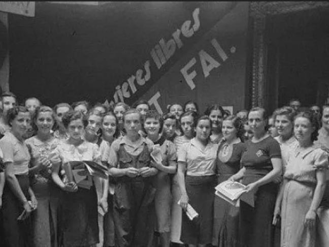 A l’intérieur de ça, les femmes vont jouer un rôle également. Dès les premières années de l’anarchisme en Espagne, il y a des femmes qui s’investissent ; il y a des femmes qui théorisent ; et il y a des femmes qui réclament leur place en tant que femmes et leurs droits en tant que femmes, pas juste en tant que travailleuses. Et au moment de la guerre et de la révolution, c’est aussi le cas. Il faut savoir que juste avant la guerre, en avril-mai 1936, il y a trois femmes qui vont fonder une revue et une organisation qui s’appelle « mujeres libres », « femmes libres ». Ces trois femmes, c’est Lucía Sánchez Saornil, Mercedes Comaposada et Amparo Poch y Gascón. Elles vont construire cette organisation qui va devenir très vite massive : on compte jusqu’à 20 000 membres au sein de l’état espagnol. C’est quand même énorme pour une organisation révolutionnaire. Cette revue et cette organisation ont deux objectifs principaux. Ce qu’on appelle la conscientisation : le fait d’apprendre aux femmes une « conscience de genre », on va dire aujourd’hui. C’est-à-dire le fait de comprendre qu’elles sont opprimées en tant que travailleuses mais aussi en tant que femmes, et que, de ce fait, il faut lutter d’une manière spécifique. Et le deuxième objectif, c’est ce qu’on appelle la capacitation. C’est-à-dire qu’elles vont investir beaucoup de temps et d’énergie pour donner aux femmes des outils pour se former. Se former de manière professionnelle, se former de manière culturelle, se former sur leurs propres corps par exemple, sur la maternité, etc., pour leur donner les outils nécessaires pour être indépendantes et émancipées. Ça, c’est les deux principaux volets que Mujeres libres se met comme objectif.
