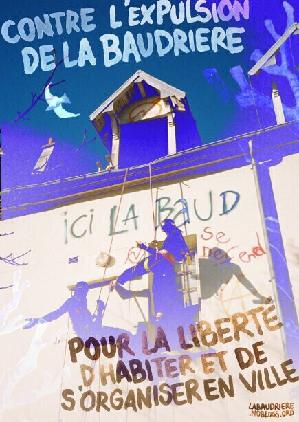 Je suis désolée, je vois qu’il y a des interventions qui étaient très préparées. Moi j’arrive un peu à l’arrache. Mais du coup je vais te présenter la Baudrière. Pour comment se monte la Baudrière, je crois que comme pour beaucoup de squats, y a des gens qui sont à la rue, en galère de logement, et y a des bâtiments qui sont vides.